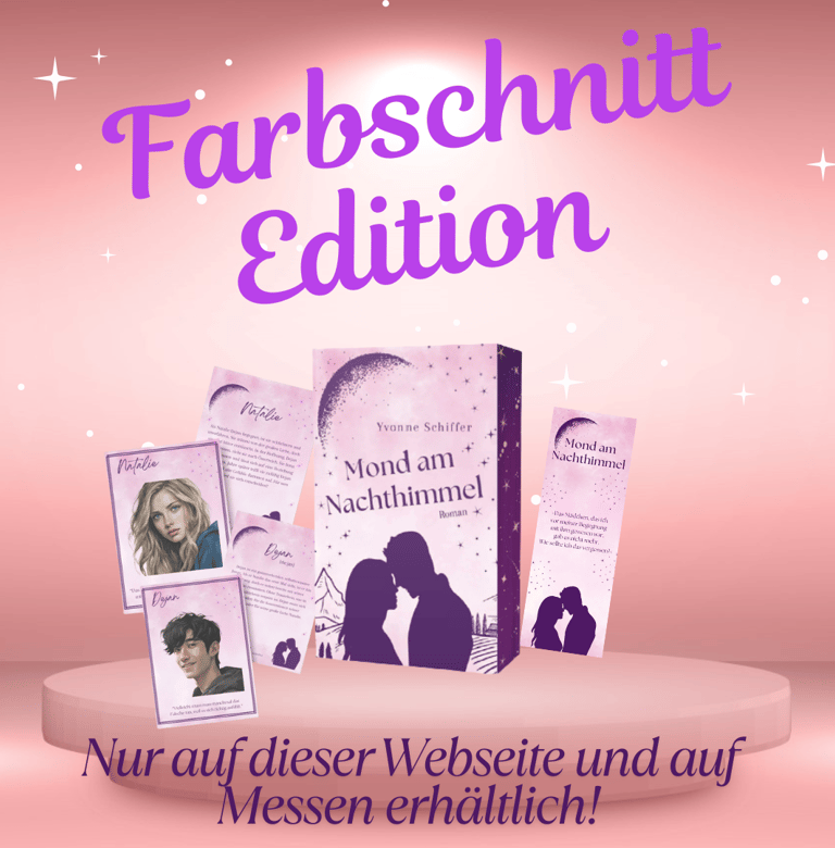 Zum einjährigen Buchgeburtstag gibt es "Mond am Nachthimmel" jetzt in einer exklusiven Buchbox. Enthalten sind die Charakterkarten, ein Lesezeichen sowie eine limitierte Auflage mit wunderschönem Farbschnitt - natürlich handsigniert.